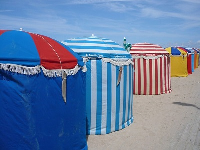 ► Trouville, et ses rues pavées et ses maisons à colombages. Aussi ses plages.