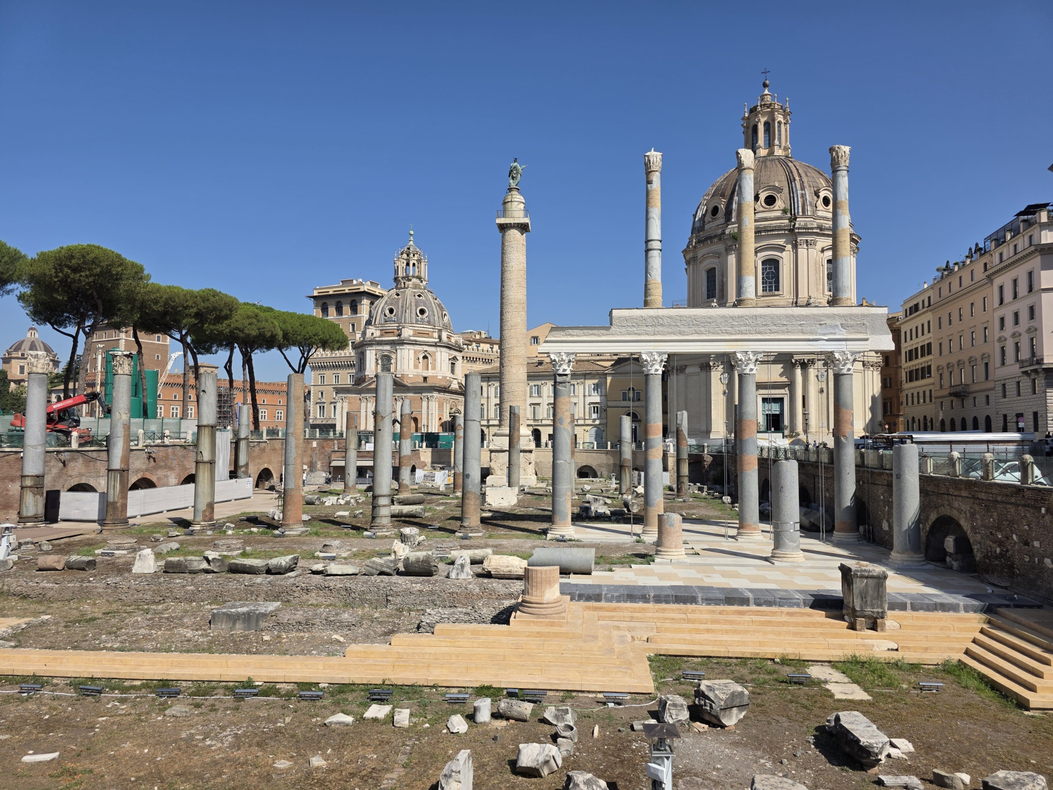 🗺️ Départ en métro vers Piazza Venezia, l’une des places emblématiques de la ville, malheureusement encombrée de grues et palissades pour des travaux de rénovation.